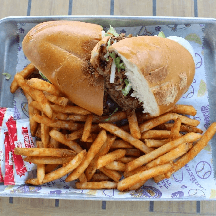 carnitas, queso fresco, avocados, lettuce, onion, tomato, jalapenos, mayo