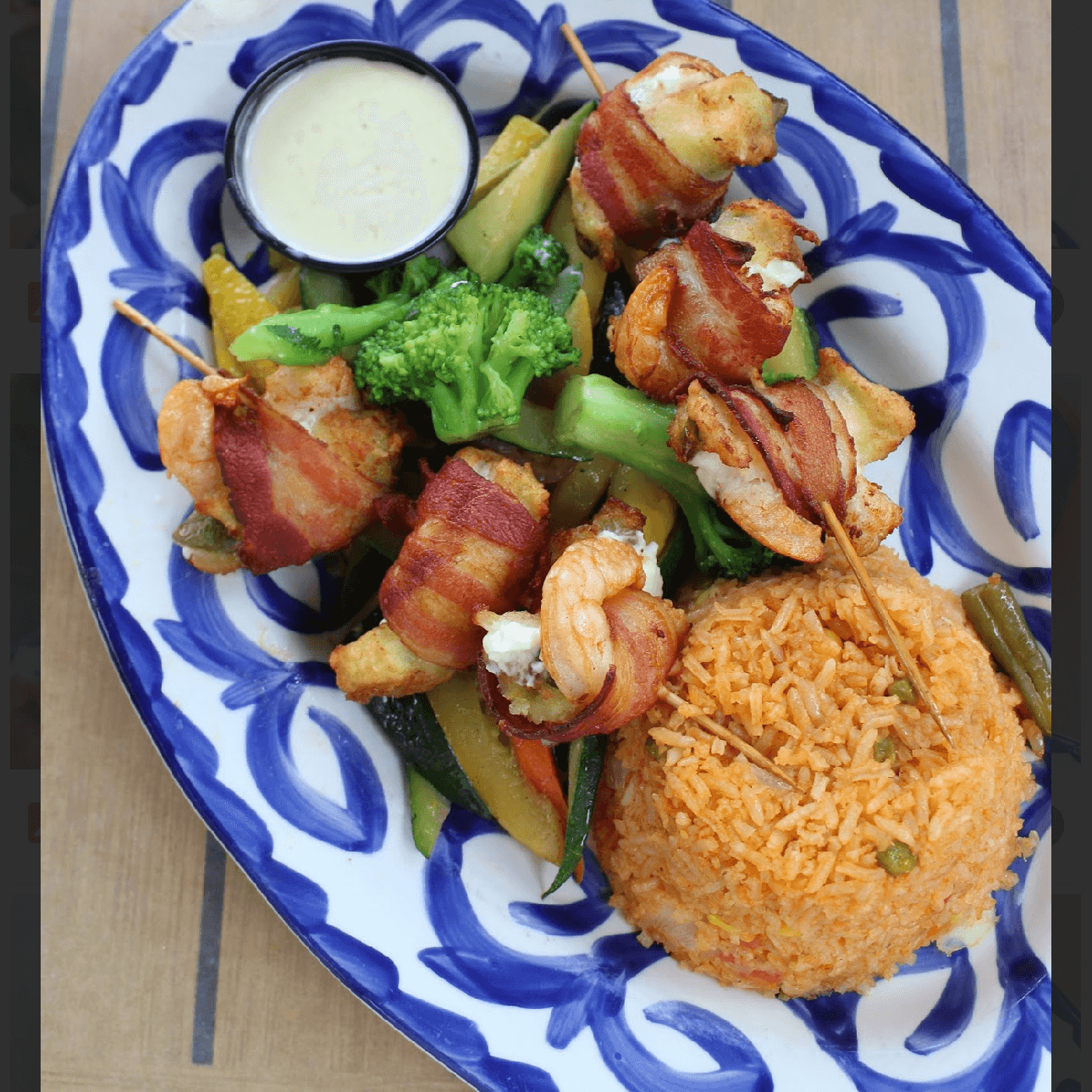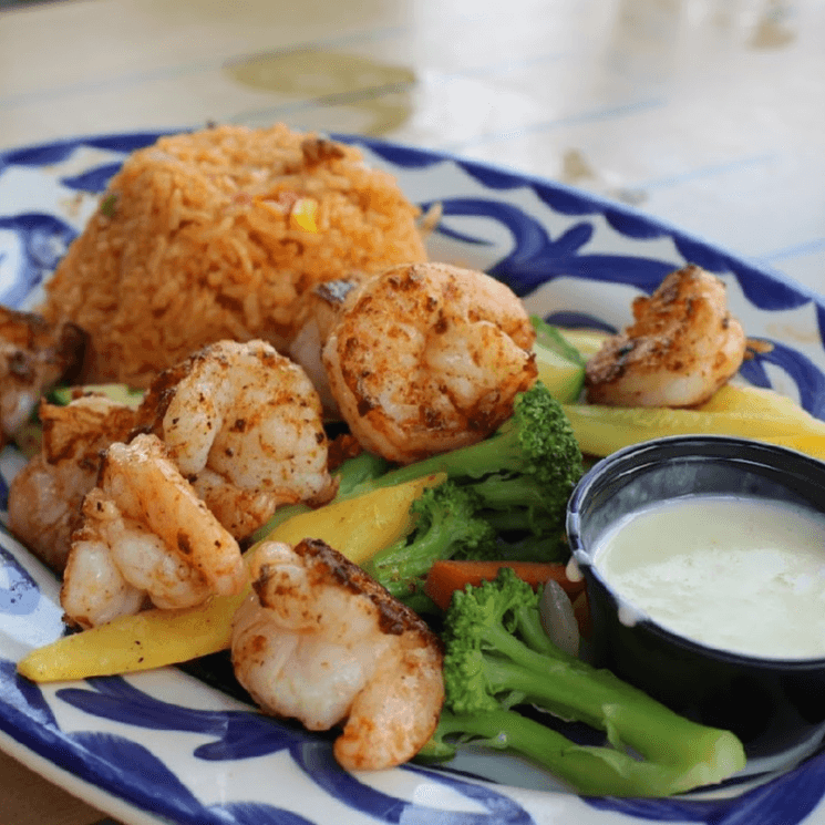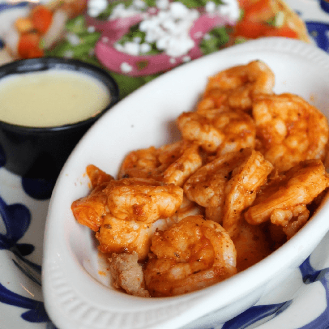 shrimp, chipotle sauce, pico, avocados, queso